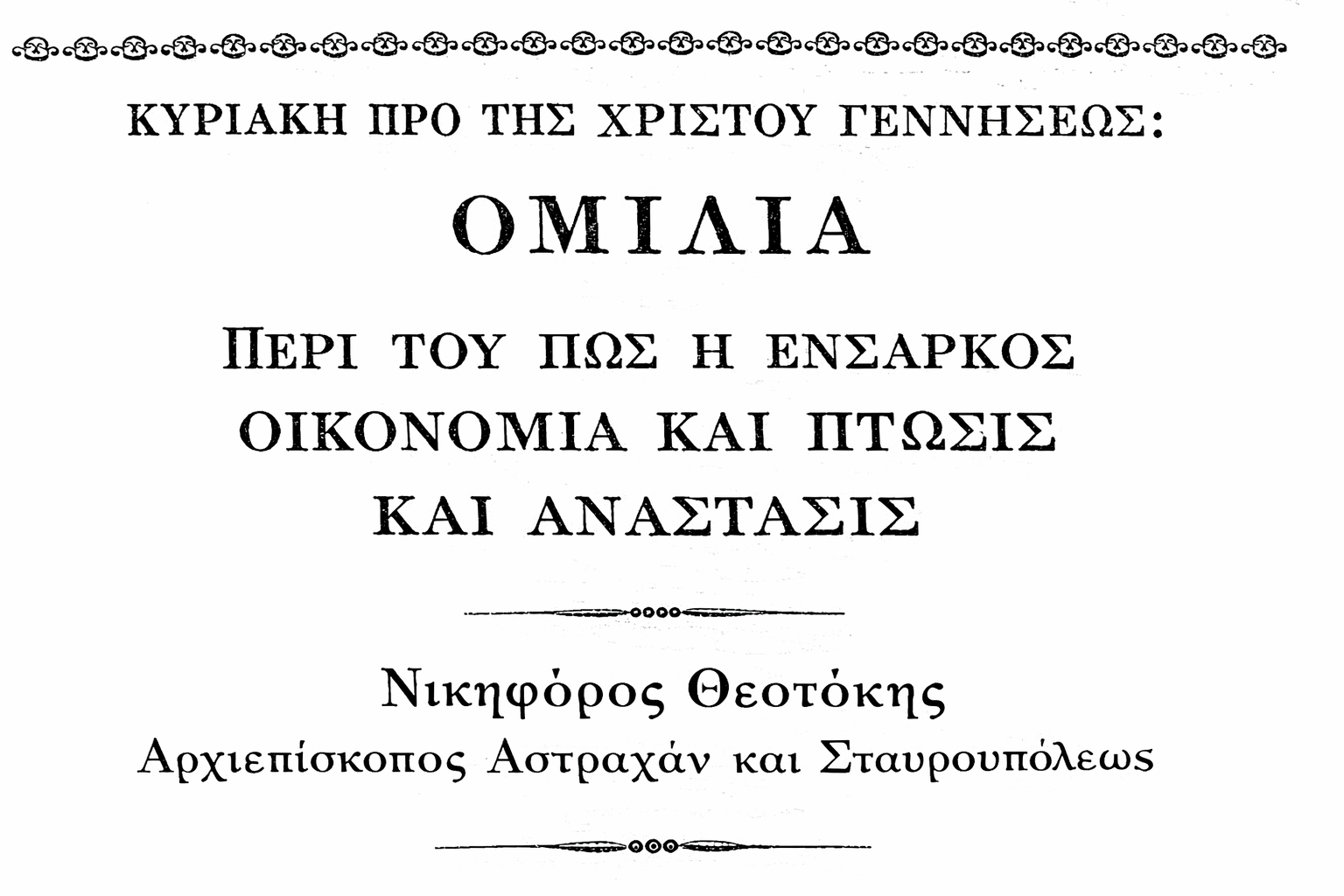 Ἀρχιεπισκόπου Ἀστραχᾶν & Σταυρουπόλεως Νικηφόρου Θεοτόκη